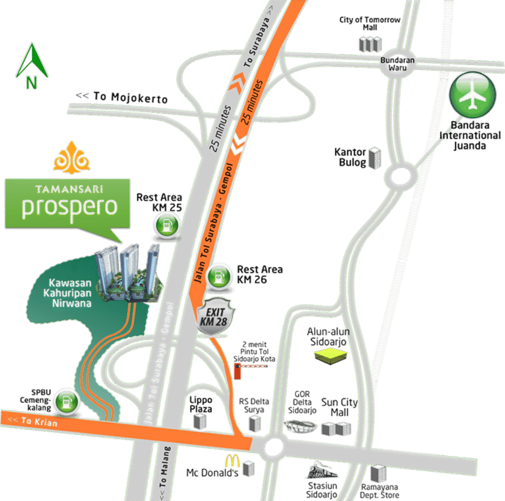 Nikmati kualitas hidup yang lebih baik di Prospero Apartment, hunian modern yang menawarkan kenyamanan, aksesibilitas, dan suasana hijau yang menenangkan. Terletak di lokasi strategis Kota Sidoarjo, Prospero dikelilingi oleh berbagai kemudahan dan infrastruktur utama.